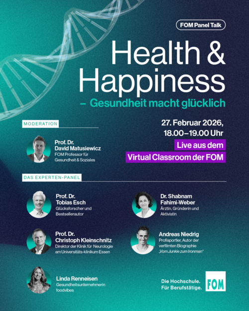 Wie beeinflussen mentale, psychische und physische Gesundheit unsere Zufriedenheit und Lebensqualität? Dieser Frage widmen sich Expertinnen und Experten aus unterschiedlichen Bereichen im Rahmen der virtuellen Podiumsdiskussion. Gemeinsam beleuchten sie, welche Faktoren ein gesundheitsbewusstes Leben prägen und wie individuelle Entscheidungen, gesellschaftliche Rahmenbedingungen sowie ein unterstützendes Gesundheitssystem dabei zusammenwirken. Aus unterschiedlichen Perspektiven wird aufgezeigt, warum Gesundheit weit mehr ist als die Abwesenheit von Krankheit.